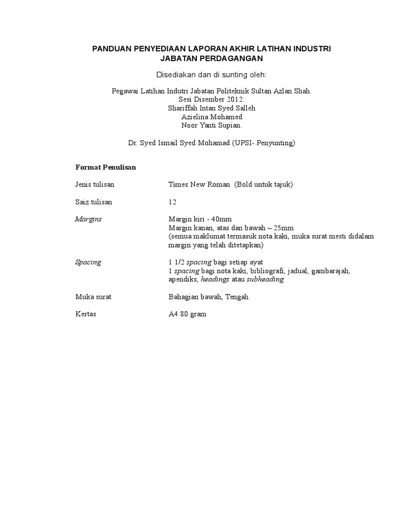 Contoh Laporan Akhir Latihan Industri Politeknik Jabatan Perdagangan Pdf Mariodsxz